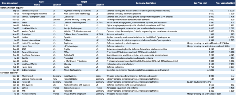 (Un)ability from EU strategics to write multi-billion checks to acquire, fast-growth but still break-even, DefTech companies will, in our view, remain a challenge as they end up trading on an EBITA, not revenues basis. However, when it comes to navigating the sovereign topics within the European Union, there is some cause for optimism: the German Rheinmetall acquired the Spanish Expal Systems in November 2022, and Leonardo (Italy) took a 25% participation in Hensoldt (Germany) in April 2021, considered as a very “hot” sell-side auction in Defence.